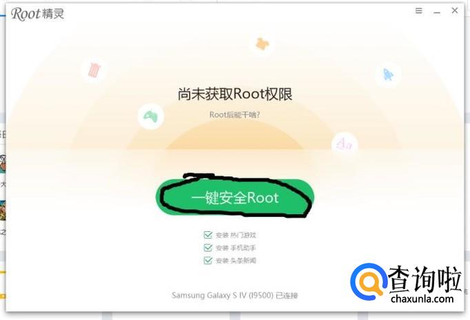 在刷机精灵的页面点击 一键root 选项,检测到手机后,我们点击 一键ROOT