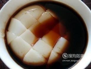 倒入盆中的凉糕糊等稍微凉了一点就可以放入冰箱冷藏了,约两个小时后就可以拿出来了,这时候凉糕就做好啦,淋上浓浓的红糖水就可以吃啦!