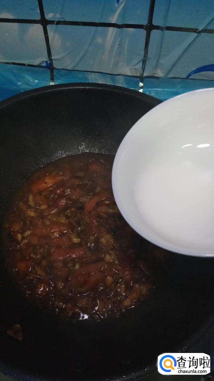 加入一小碗清水,大火将水烧开,然后取适量水淀粉勾芡,这样炸出来的酱,是微稠状,拌面更香。