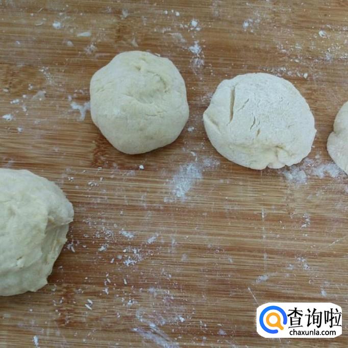 把面团拿出,在案板上揉好,用手拽大小相同的面团。
