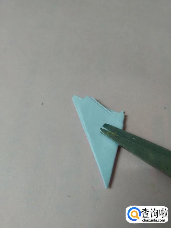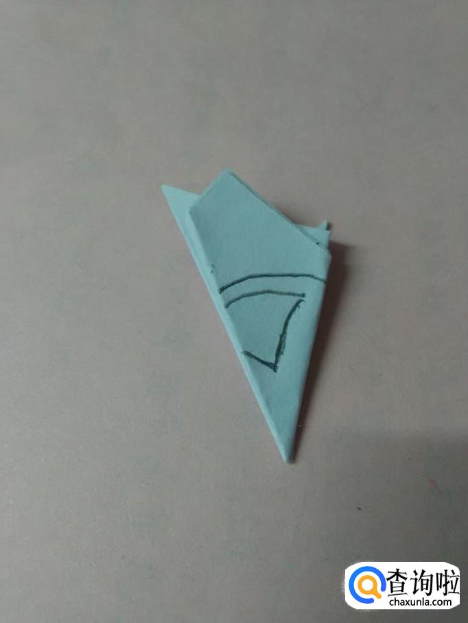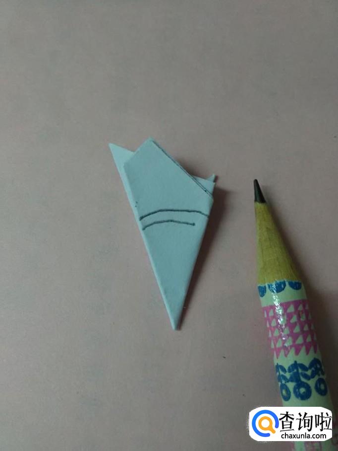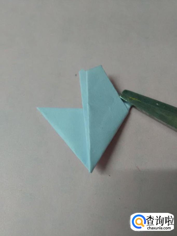 将右边的角向左折到五分之一处,左边的小角占一份,右边因为是双层的,每层占两份宽。