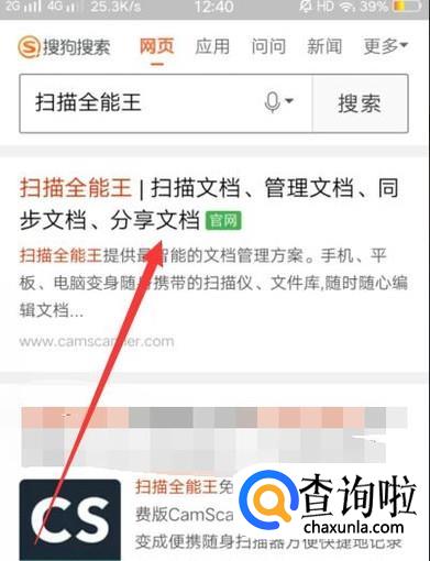进入之后,在搜索框中搜索“扫描全能王”,将其下载并安装在手机上面,如图所示。