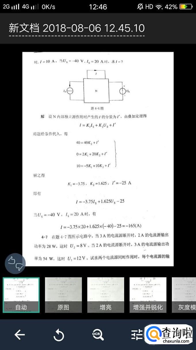 点击右下角的对勾,即可开始扫描,这时可将原图切换一些效果,例如:自动,原图,增亮等。