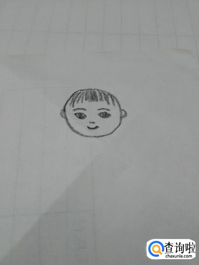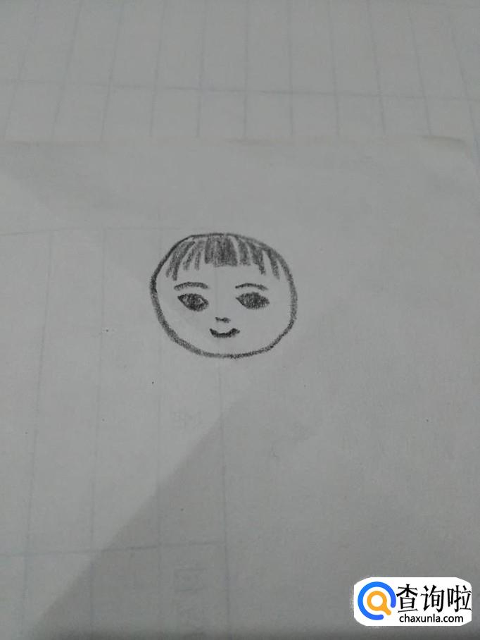 在圆形的上方画一些整齐的短线,表示儿童的刘海。