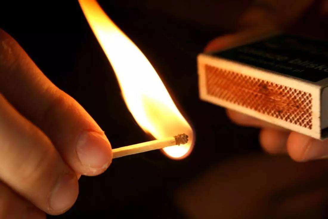 为了便于火柴燃烧,紧挨着火柴圆头的杆上还涂有1厘米长的石腊。纸制火柴杆上,这一部分看得更清楚。火柴盒的摩擦面上涂有作为发火剂的红磷、氧化锑,有时也涂有二氧化锰、硅砂等。