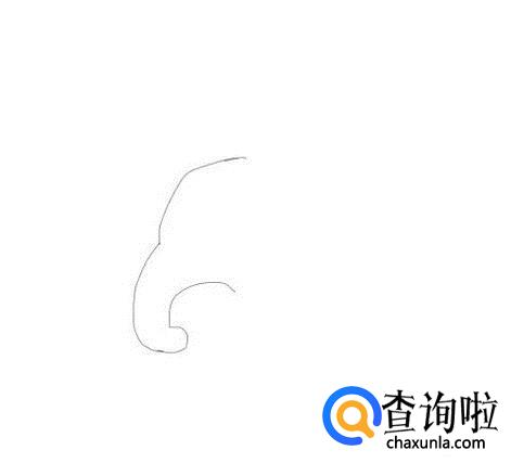 先画出大象的头部,然后在头部上画出大象的鼻子,如图所示: