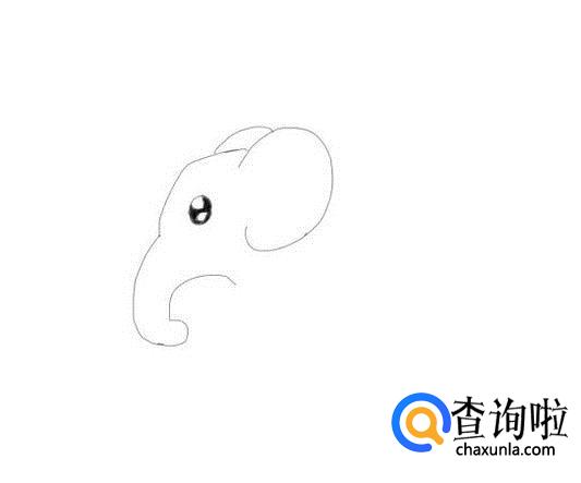 再在头部上画出大象的两只耳朵,然后再画出大象的眼睛,如图所示: