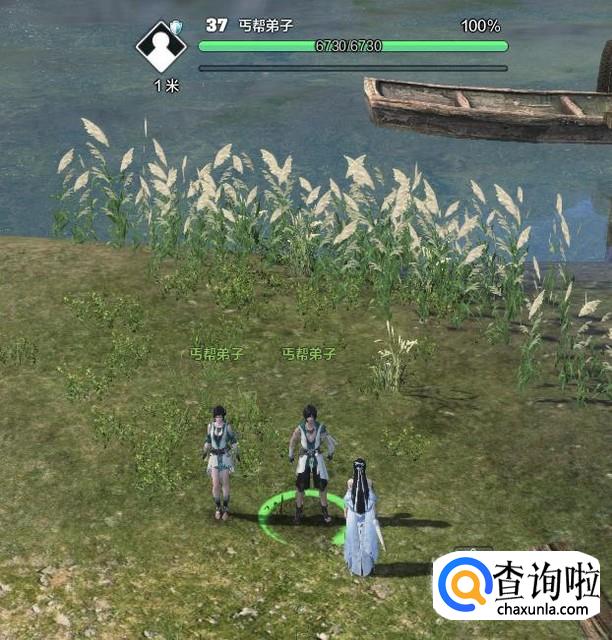 拜访:丐帮弟子。NPC坐标(1428,2275),在龙井茶园江边的渡口处。