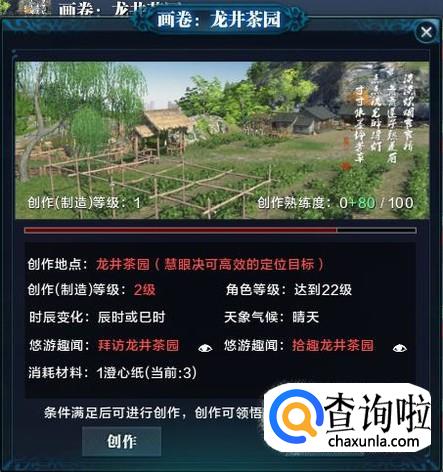 天涯明月刀中文士或乐伶身份的玩家,可以进行各地区画卷的创作,而要创作一幅画卷,需要先满足一些悠游趣闻以及云游揽胜的前提条件,下面小编就来给大家讲解一下创作江南地区画卷龙井茶园的前提条件。