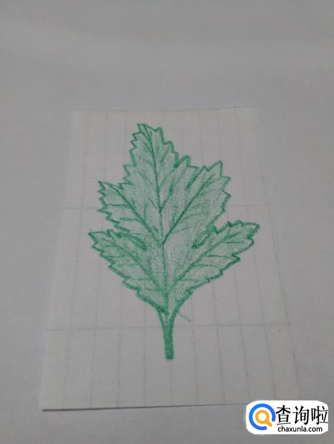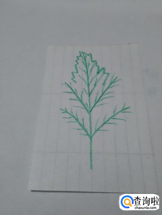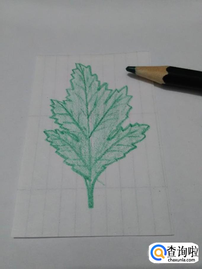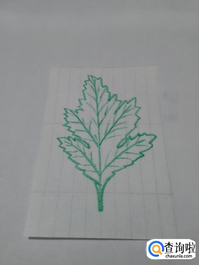最后用绿笔将叶子涂上颜色,菊花的叶子就画完了。