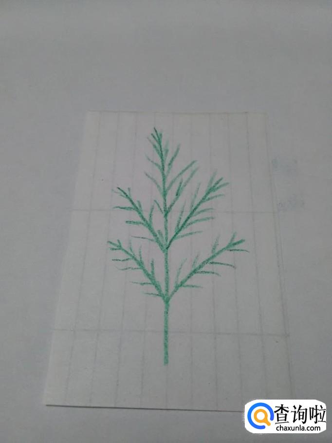 在每条叶脉的两侧再画一些短的弧线,表示更细的叶脉。