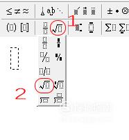 点击编辑器里面的根号符号,这时会有一些选项弹出,我们直接点击一般“根号”形式的符号。
