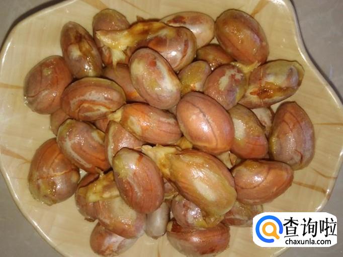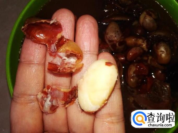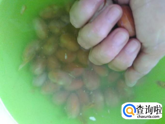 把木菠萝籽放到水里用手抓捏出表皮的那层薄膜,然后捞上碟子备用。
