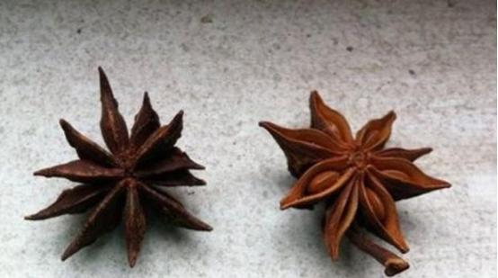 第二点就比较简单了,直接看它的颜色也能分辨出来,真的“八角”一般都是呈棕红色,而且都比较有光泽,但是假的就不一样了不仅颜色比较浅近似土黄色,而且价格便宜了差不多也有两三倍左右,十多块钱一斤就能买回家。