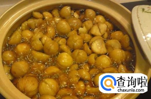 栗子二百克左右,红枣二十枚,红枣去核清洗干净待用,生栗子去壳待用。小笨鸡一只清理干净之后切块状,先进行煸炒,然后根据自己口味加点调料,加点水继续炒,鸡肉到了八成熟的时候加上红枣以及栗子加水一起闷熟,自己调味就可以了。一般一个礼拜吃一次,对于低血压的血压以及身体状况是有着很好的调理效果的。