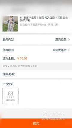 将收到的物品拍照并上传,用来当做退货的凭证,以让卖家能够尽快的进行处理,然后点击“提交。”