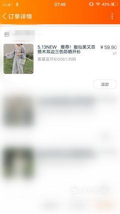 点击该物品进入订单主页,之后点击右下角的“退款。”