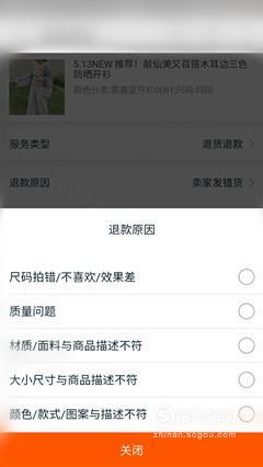 根据实际情况来选择退款原因,如尺码拍错,质量问题,颜色不符等。