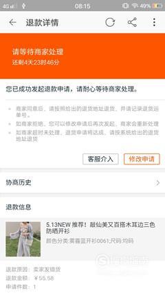 然后卖家会有四五天的时间来处理你的申请,若同意的话,则将物品包裹好,将卖家的地址提供给快递公司退掉即可。
