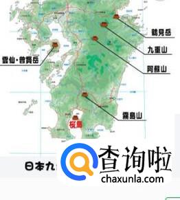 雾岛火山带,以阿苏山和雾岛山为主。(位置:本州岛西部内侧)