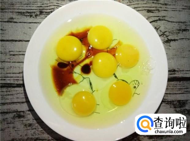 鸡蛋打在碗里,加入适量的酱油,用筷子绕着同一个方向均匀打散。