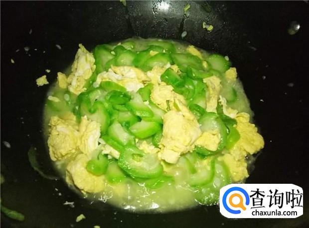 把鸡蛋和丝瓜翻炒均匀,即可出锅。