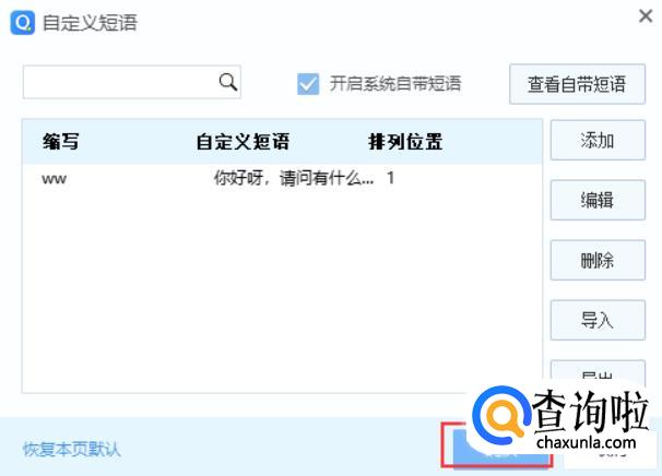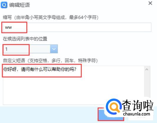 点击【确定】按钮,这样QQ拼音输入法的快捷短语就设置好啦。