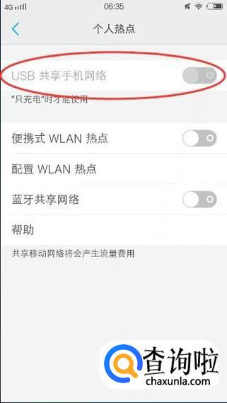 然后再选择【USB共享手机网络】即可,如下图所示: