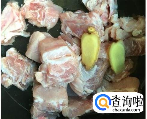 猪腿肉买回家之后清洗干净,直接切成大块,用料酒和生抽腌制十分钟。