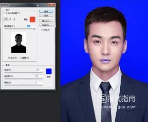 下方颜色替换为蓝色(0,0,255),点击确定,我们可以发现背景已经改好了,但是人物的脸部也变了颜色,这里我们需要调整一下细节,在蓝色背景的图层上添加蒙版