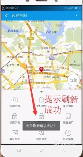 当提示定位刷新请求成功的时候代表手机位置更新,如下图所示