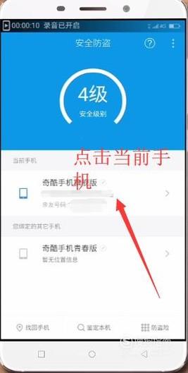 进入安全防盗界面以后我们点击当前的手机,如下图所示