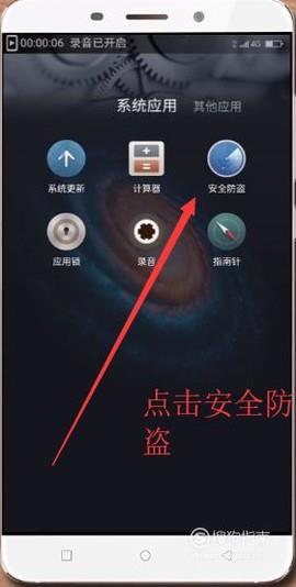 接着在系统应用界面点击安全防盗图标,如下图所示