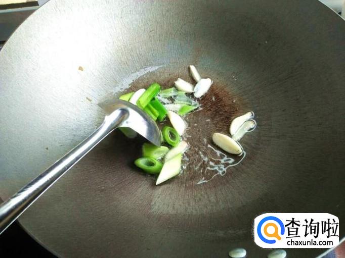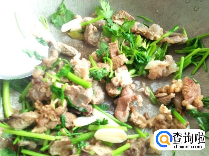 因为羊肉是薄片,所以很容易炒熟的,熟了之后再放调料,食盐,味素一点,这个根据自己的口味调就行。