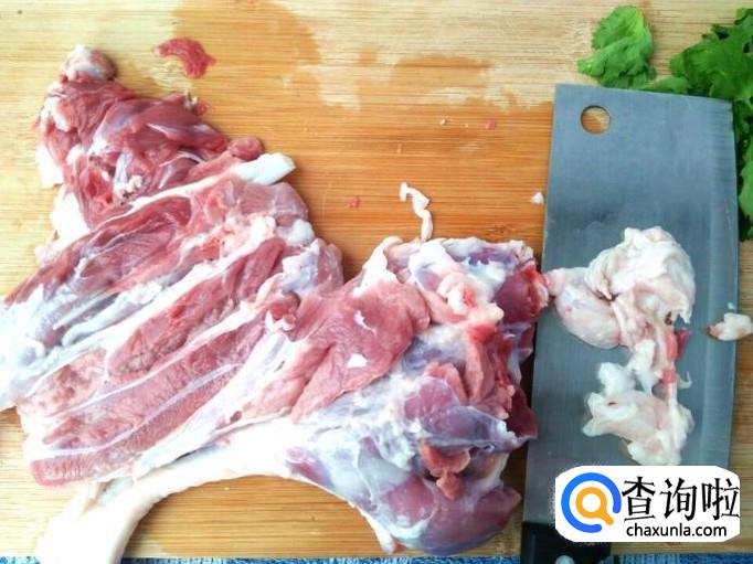 我买的是羊后腿还是羊前腿的肉分不清,反正是羊腿上面的肉肉,用来清炒是最合适的,一点也不会油腻,所以不用担心上火问题。羊肉买回家清洗干净,上面会有一些羊油连在上面,都用到剔除。