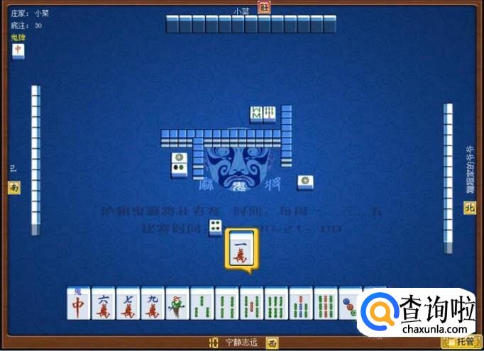 顶家摸牌打一筒,意味着顶家要打缺筒子。本家摸牌,本家摸到三筒,由于本家手里的筒子最少,所以本家决定打缺筒子这门牌。于是,本家打出四筒。如图所示。