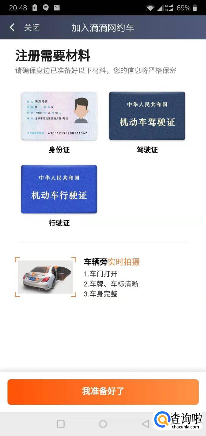 选择自己跑车的城市,然后点击立即加入进入“注册需要材料”界面,点击“我准备好了”。