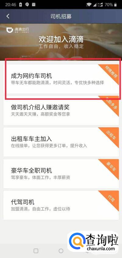 点击立即注册,开始接单赚钱,然后选择“成为网约车司机”。