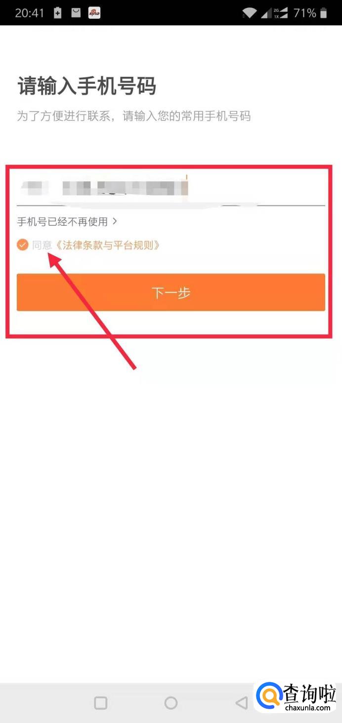 首先,在手机应用市场里搜索滴滴车主,并下载安装。在打开页面输入自己的手机号码,并勾选《法律条款与平台规则》,然后点击下一步。