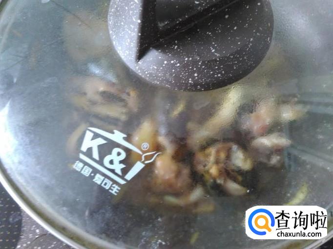 然后放2小勺水,盖上盖小火焗3分钟左右。
