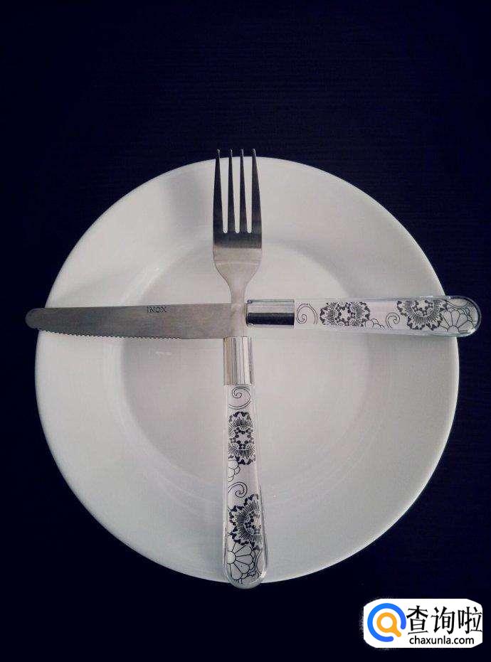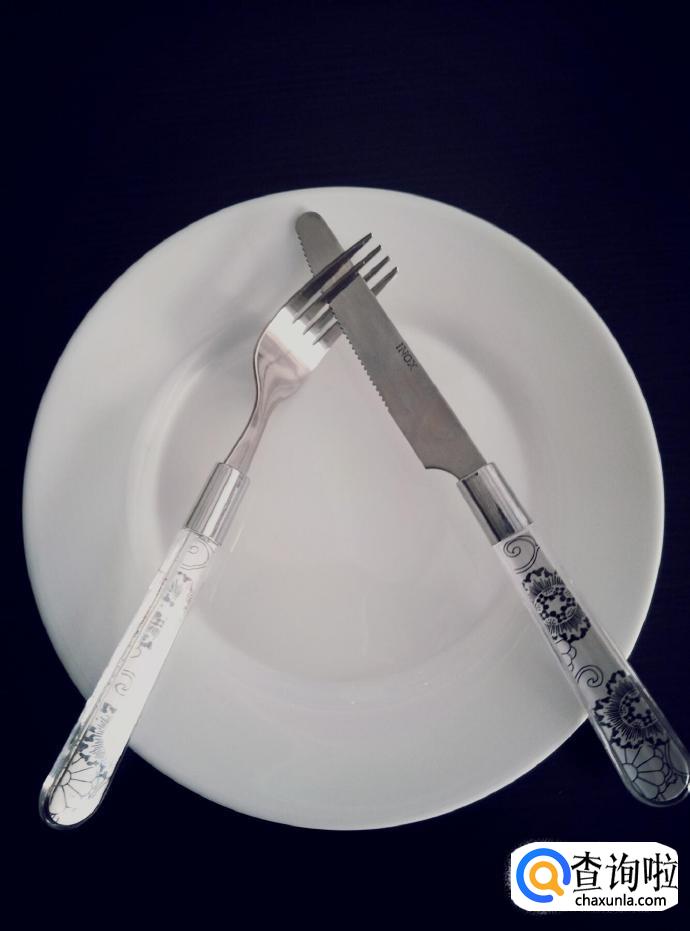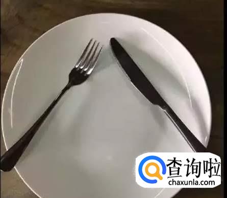如果我们想表示餐食非常美味,很好吃,那么我们可以将刀叉横着摆在盘子上。