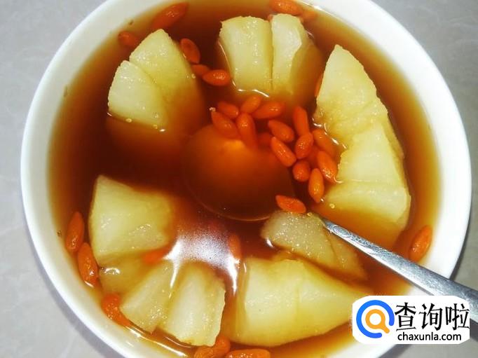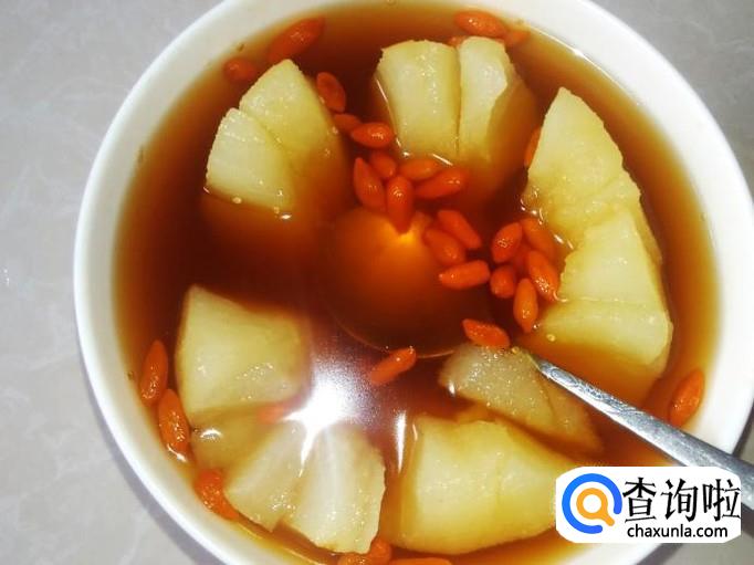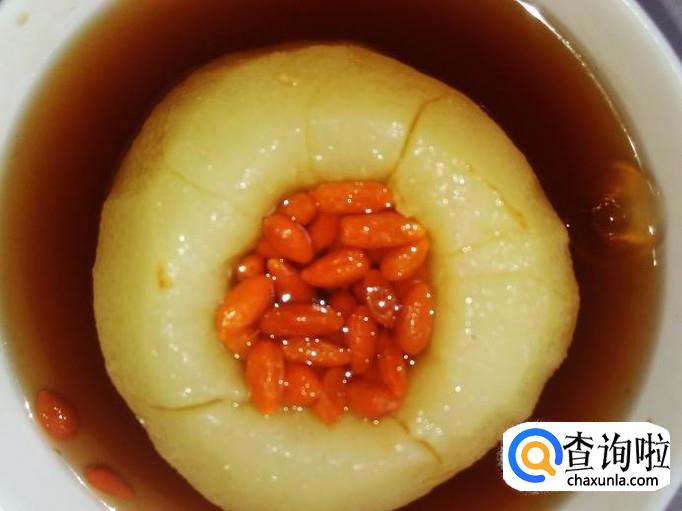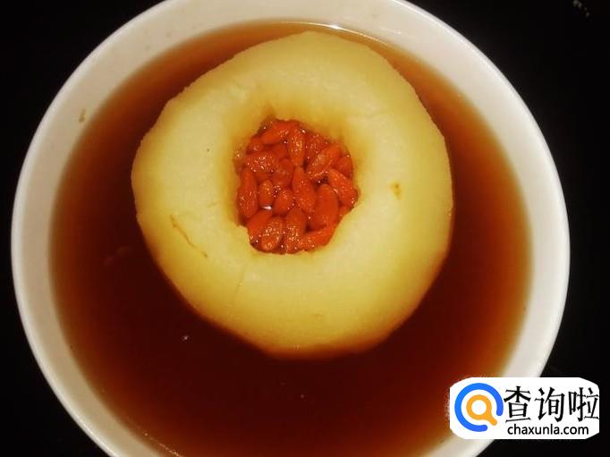 雪梨1个,枸杞10克,红糖适量。