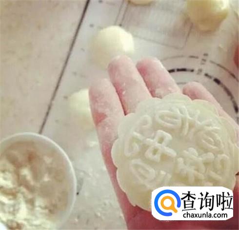 最后用月饼磨具按压出一个月饼的模型来,这样冰皮月饼就做好了。