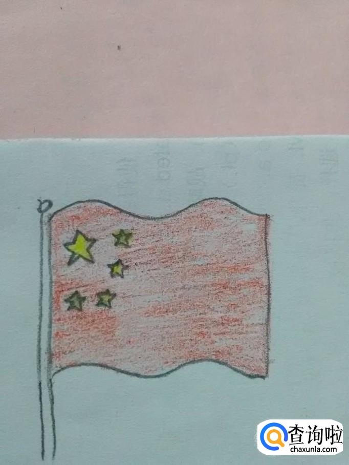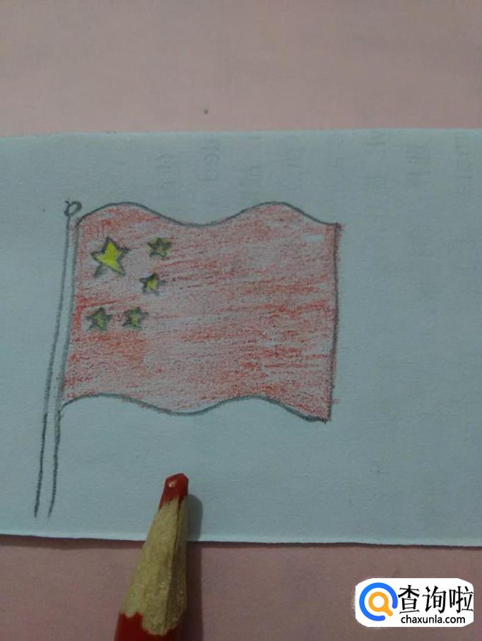 用红笔涂除了五颗星以外的旗子部分。到这里,五星红旗就画完了。