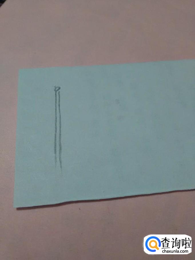 先用笔在纸上画一个圆,在圆的下面画两条竖线,表示旗杆。