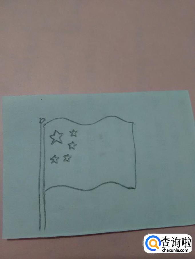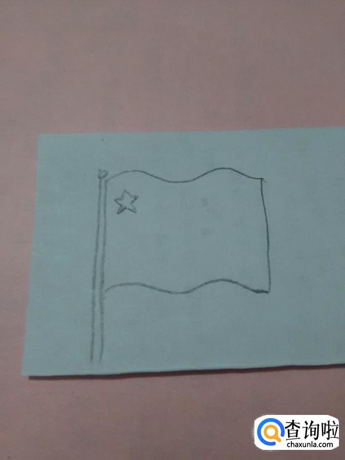 在旗子的左上角画一个五角星,五个角要一样大。