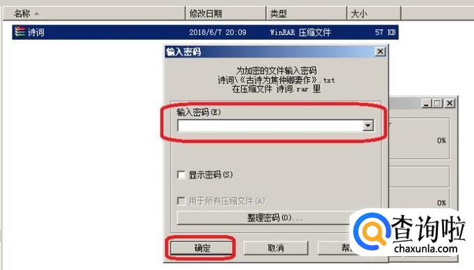 因为是加密文件,所以解压缩过程中会要求输入密码,我们把加密文件的密码输入就可以了。