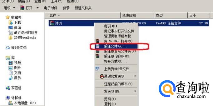 其次,我们找到需要解压缩的加密文件,我们看到,它现在的图标就是WinRAR压缩文件形式,我们右键点击,选择“解压文件”。
