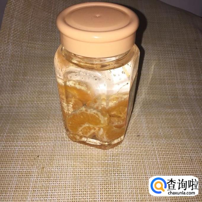 接着把处理好的桔子装进容器中,如下图所示。