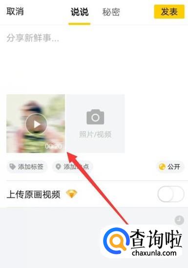 进入之后,点击图示位置添加视频,如图所示。